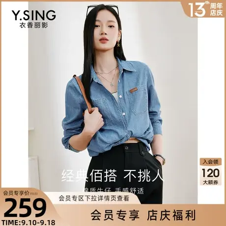 长袖牛仔衬衫女衣香丽影2023年秋季新款法式独特别致港风复古上衣